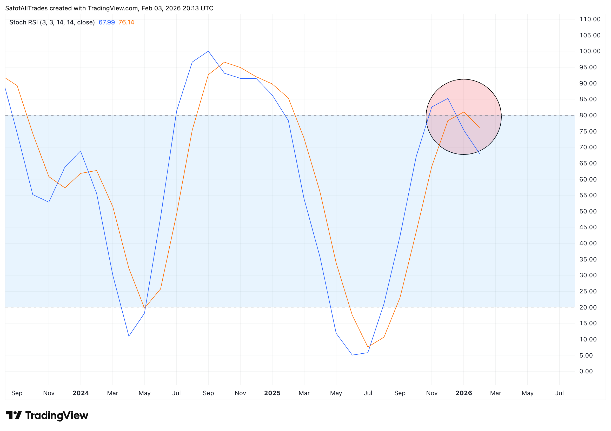 Looking for clues, we see that our December 2025 candle has an Upper Wick, which indicates that at some point in December it was a green candle, it attempted to breakout past the upper border but it then sold off quickly and closed lower.